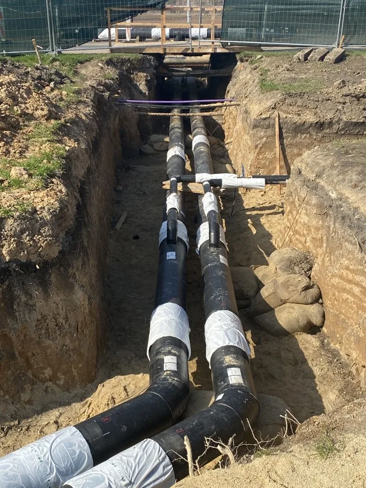 Výstavba inženýrských sítí, plynovodů a produktovodů včetně zemních prací a technických zkoušek.